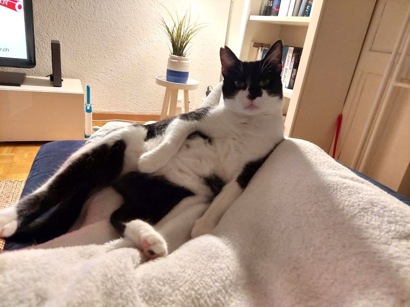 Wir sahen dich auf einem Foto und wussten sofort, dass wir dich gerne adoptieren wollten. Quer durch Europa bist du deshalb gereist und am 1. September bei uns angekommen. Scheu und ängstlich warst du genau einen Tag lang dann hast du dein bzw. Flurins Zimmer erkundet, dich aufs Essen gestürzt und bist mit «Spielzeugen» durch die Wohnung gerannt. Schon am dritten Tag durften wir dich halten und streicheln. Kiko, unser grosser Kater, war nicht sooo begeistert über das kleine und ewig nervende Büsi, doch er akzeptierte die «Unterhaltung». Wenn du ihn zu sehr gestresst hast, bekamst du eins mit seiner Tatze. Eines Samstagmorgens lagt ihr Katzen auf meinem Bett und ich sah, dass dein rechtes Auge verletzt war. Tja, das war nicht nur verletzt, sondern leider nicht mehr zu retten. Am selben Nachmittag wurdest du operiert. Deinen Softkragen fandest du supermühsam und hast mit ihm gekämpft. Die Wunde heilte gut. Ab da warst du als einäugige Piratin munter unterwegs und Mitte November, nach deiner Kastration, durftest du raus. Das war für dich eine Offenbarung. Solange die Sonne schien. Regen empfandest du als Zumutung und Schnee erst recht. Mit den Wochen hast du immer ein wenig zugenommen und bist ein paar Millimeter gewachsen. Dein Fell wurde glänzend und schön, wenn Besuch kam, warst du immer neugierig. Kaum lag jemand aus der Familie auf dem Sofa oder dem Bett, sprangst du dazu und wolltest schmusen. Lesen oder sonst was war nicht mehr möglich.