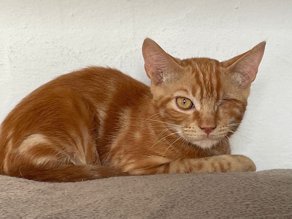 Unvorstellbar traurig, wieviel Stevens Bruder, ein zartes Katerchen, in den ersten Monaten seines Lebens mitgemacht haben muss, wenn man Bilder seines heraushängenden Auges, das entfernt worden ist, vor sich hat... Inzwischen in sehr guter Verfassung, zeigt er sein Zutrauen mit zufriedenem Schnurren, wenn er gestreichelt wird. Bis er – am liebsten zusammen mit Steven – in ein für immer Zuhause reisen darf, hofft der liebe Bube auf die Unterstützung eines Göttis oder Gottis.