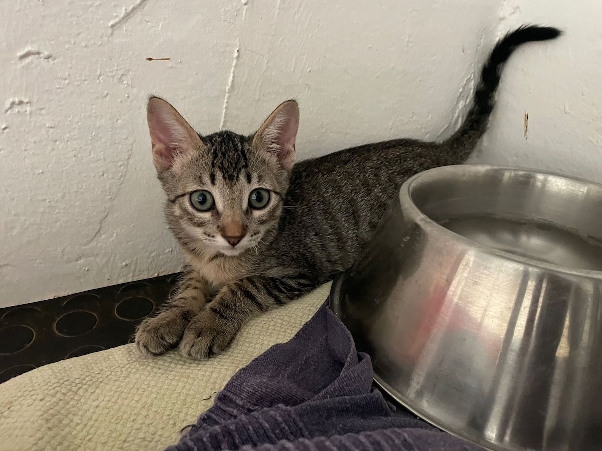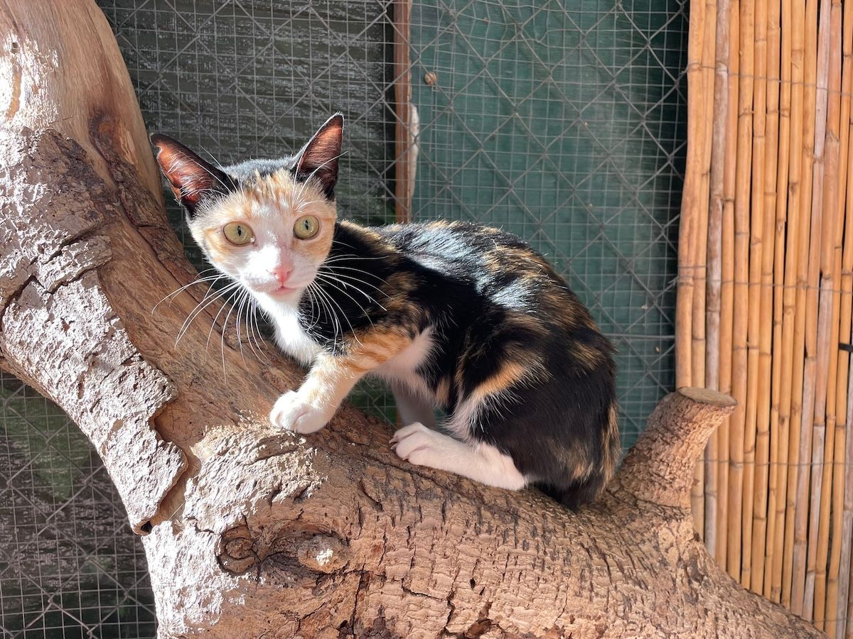 Klapperdürr und völlig eingeschüchtert in einer Kolonie gefunden, wurde Klein-Trixie zum Tierarzt gebracht und durfte danach ins Refugio einziehen. Da wurde das sehr zarte und bildhübsche Dreifärberli, das Streicheleinheiten mag, liebevoll aufgepäppelt, hofft auf ein neues Zuhause und wünscht sich einen Götti oder ein Gotti.