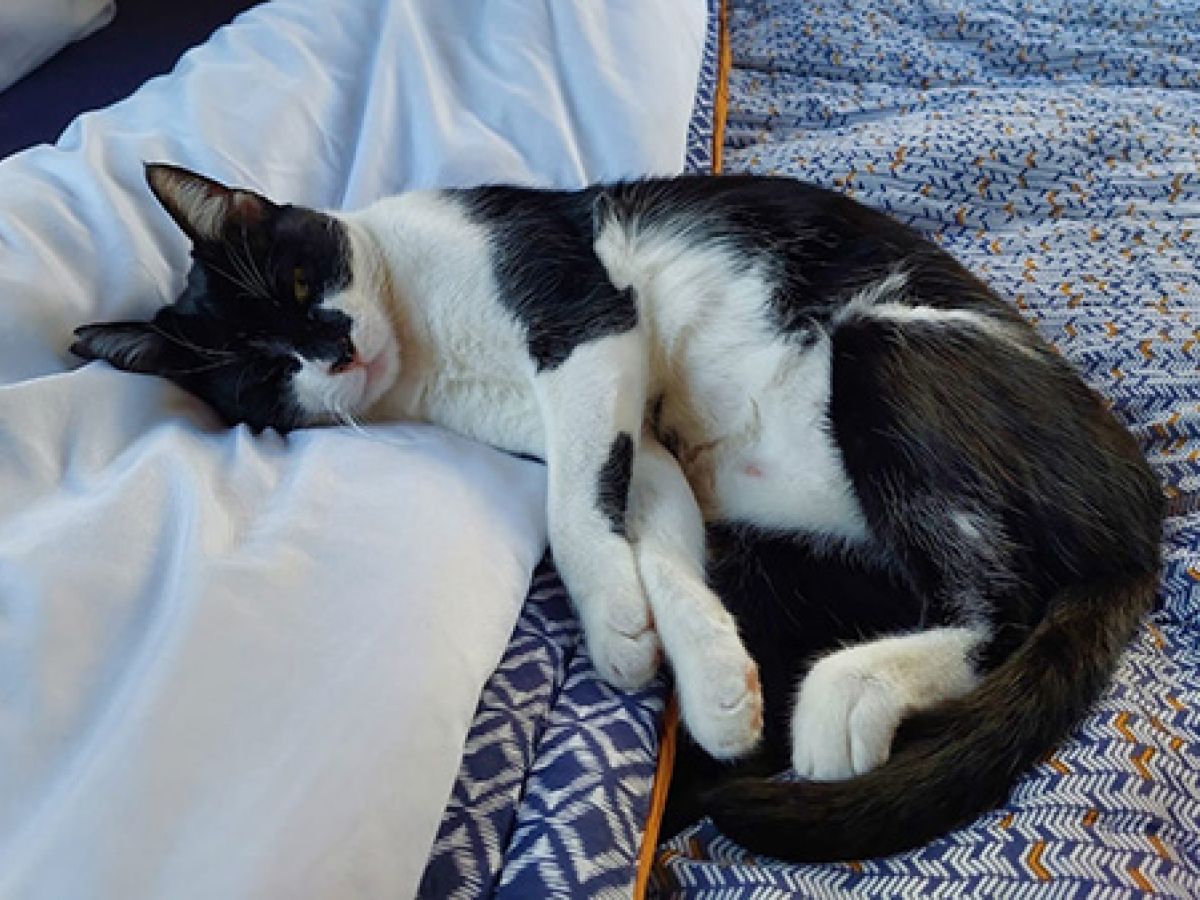 Eines Abends, etwa drei Wochen später, sass ich zusammengekauert in einer Ecke und fragte mich, wie lange ich diesen Horror noch ertragen könnte. Da – was war das? Auf einmal hörte ich freundliche Stimmen meinen Namen rufen. Die netten Frauen aus dem Refugio hatten von meinem Schicksal erfahren und suchten nach mir. Endlich war ich in Sicherheit. Und dank dem Einsatz der Refugio- und Waisenkatzen-Tanten hat sich meine heutige Mami, die mich ursprünglich nur inserieren sollte, bald schon Hals über Kopf in mich verguckt. So bin ich am Thunersee gelandet.