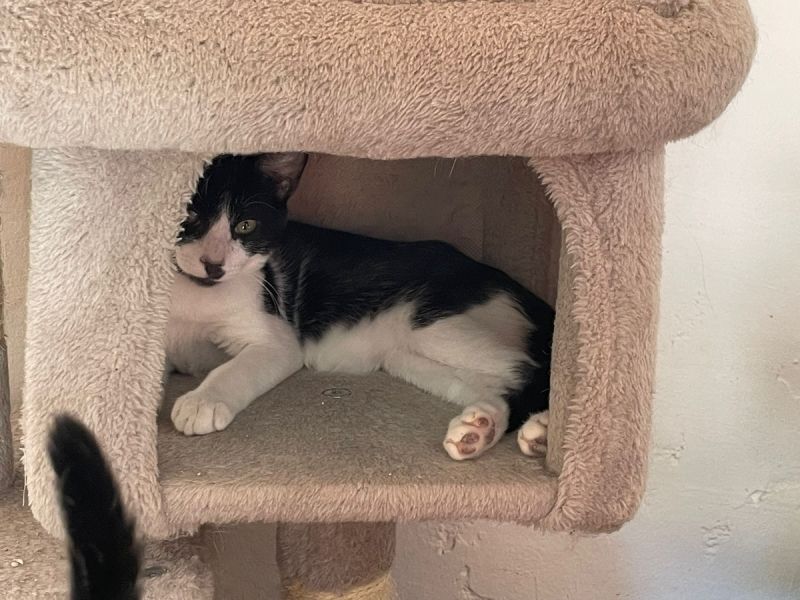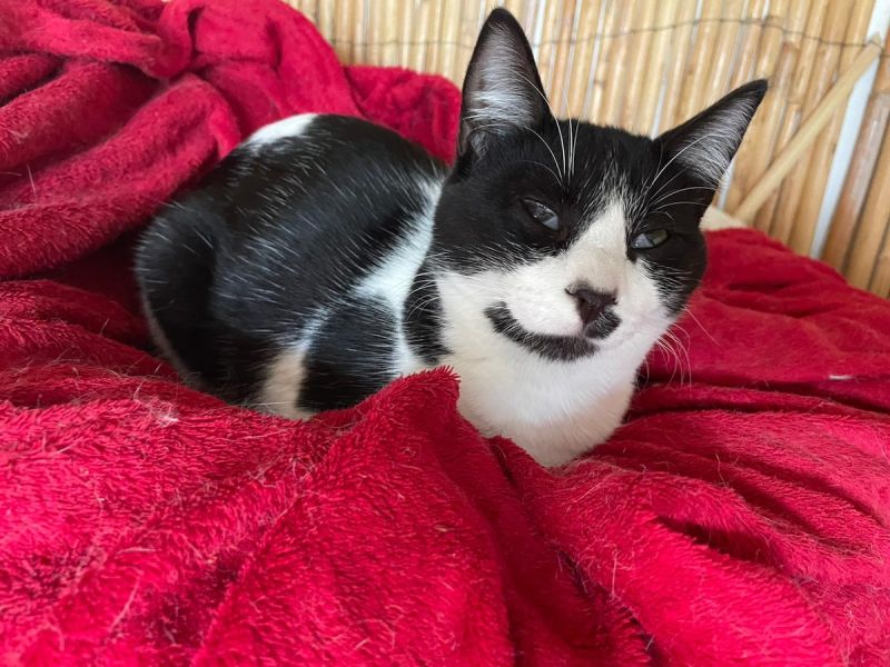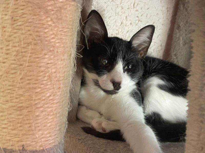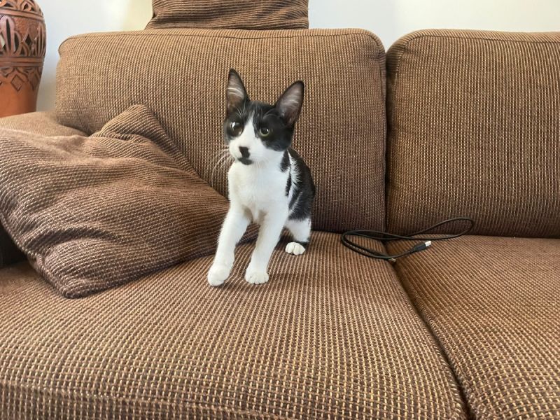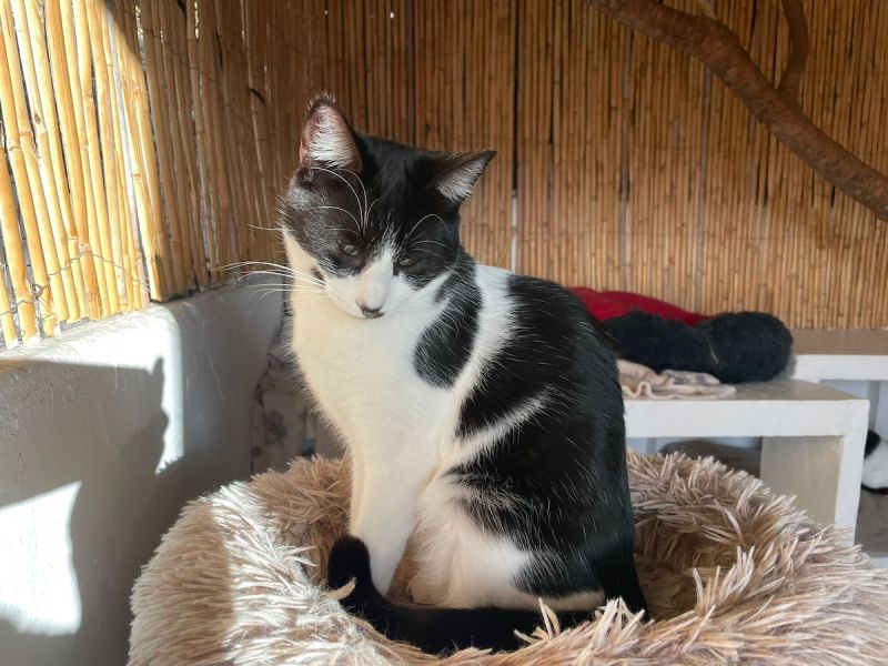 Das hübsche schwarz-weisse Katzenkind Alica wurde verlassen von Urlaubern gefunden und in die Auffangstation gebracht.