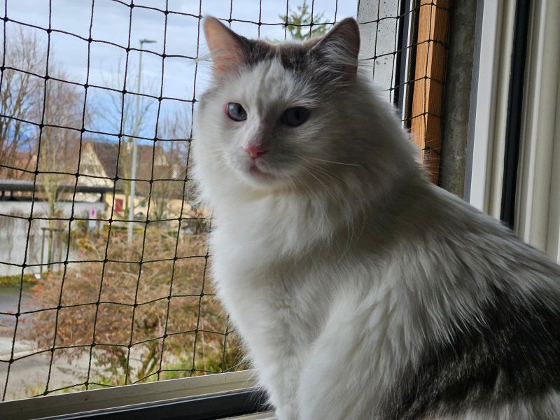 Auch mit den 4 Kätzinnen vertrug er sich gut. Trotzdem schien er im Rudel Stress zu haben, denn er begann im Haus zu markieren. Gesundheitlich wurde er rundum abgeklärt, das Problem scheint psychisch zu sein, denn körperlich ist er ein fitter, junger Kater