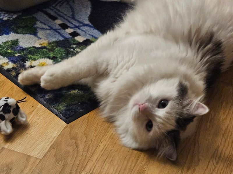 Mit sehr schwerem Herzen müssen sich nun die Besitzer zu seinem Wohl von ihm trennen, denn eine vorübergehende Ferienplatzierung in einem katzenfreien Haushalt zeigt, dass er dort nicht markiert, weniger unruhig ist und auch besser durchschläft.