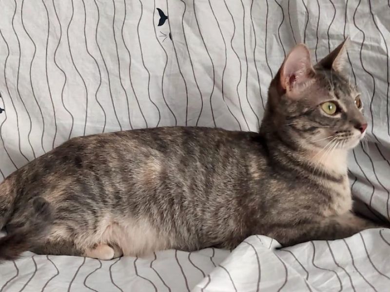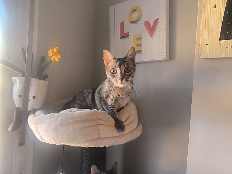 Das hübsche Schildpatt Katzenmädchen Hada lebte mit seinem Bruder Sol bei einer älteren Frau. Diese zog nun in eine andere Gegend und konnte die beiden Samtpfoten nicht mitnehmen. So wurden die beiden in der Auffangstation abgeben.