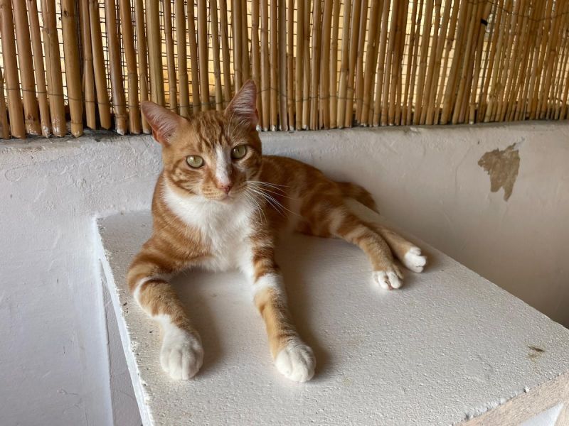 Das hübsche rot-weisse Katerchen Hermes tauchte plötzlich allein in einem Dorf auf. Dort wurde es von Tierfreunden gefüttert und kastriert. Da Hermes allen Leuten hinterherlief und um Zuneigung bettelte durfte er in die Auffangstation ziehen.