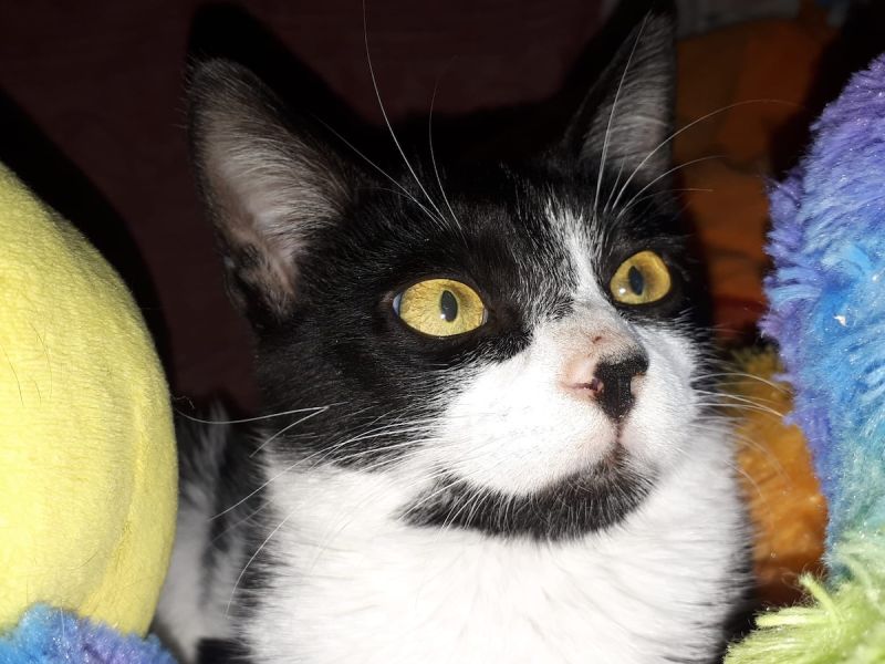 Der Spanier Miguel ist ein sensibles Katerchen und gegenüber Menschen noch sehr zurückhaltend und abwartend. Er spielt gern für sich und mag andere Katzen.