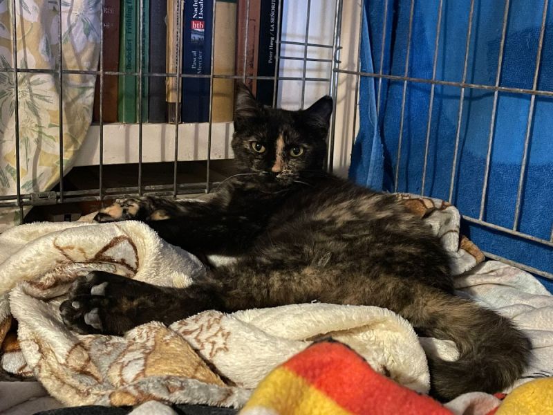 Das hübsche Schildpattmädchen Nina wurde in unwegsamem Gelände mit der Falle gefangen und in die Tierklinik gebracht. Nach der Untersuchung durfte es in die Auffangstation ziehen.