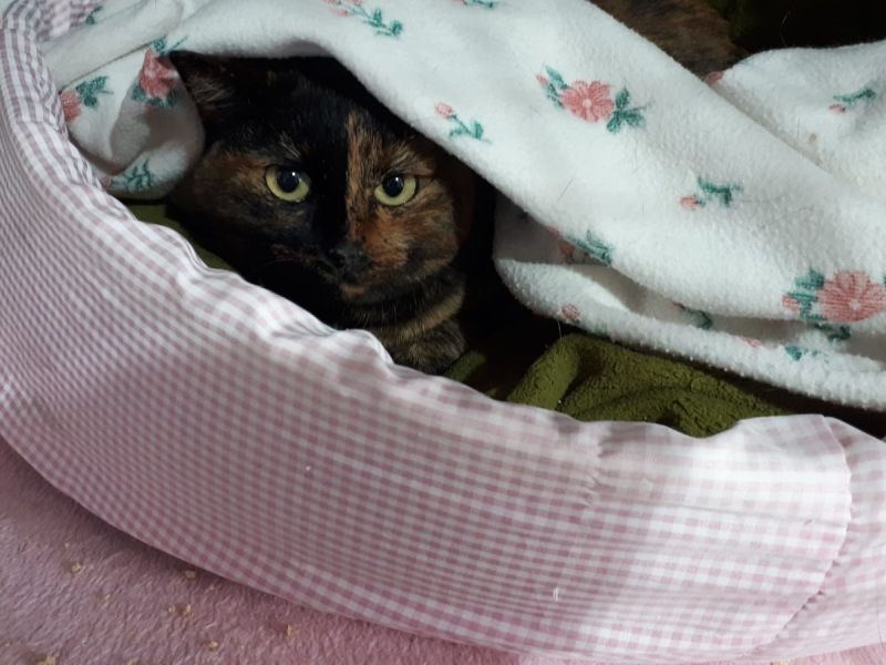 Die hübsche Spanierin möchte nicht auffallen und liegt gerne unter der Decke. Sie liebt jedoch Streicheleinheiten, schnurrt und ist dem Menschen zugetan.
