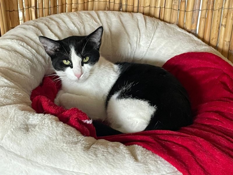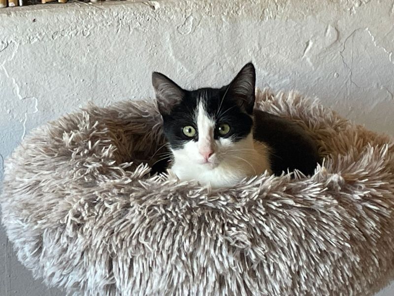 Der hübsche schwarz-weisse Spanier Suerte ist ein freundliches Katerchen, welches seine Gspändli sehr liebt. Mit ihnen tollt er durch das ganze Katzenhaus, kuschelt gerne und spielt für sein Leben gerne. Er liebt Streicheleinheiten und ist dem Menschen zugetan.