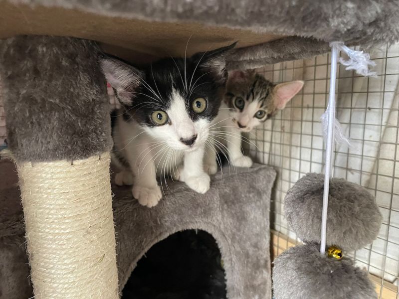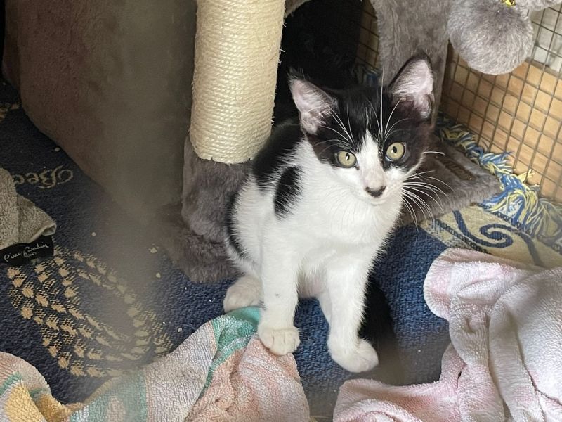 Das schwarz-weisse Katzenkind Timmy wurde mit der Mama und den beiden Geschwisterchen in einer Katzenkolonie gefunden und mit der Falle eingefangen. Nach dem Tierarztbesuch durfte die ganze Familie in die Auffangstation ziehen.