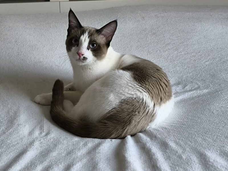 Der hübsche Siam Snowshoe Tom und sein weiss-grau getigerter Bruder Jerry wurden mit der Flasche aufgezogen. Danach waren sie offenbar nicht mehr interessant und wurden kurzerhand in der Auffangstation abgegeben.