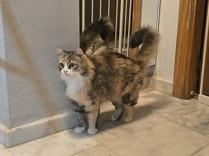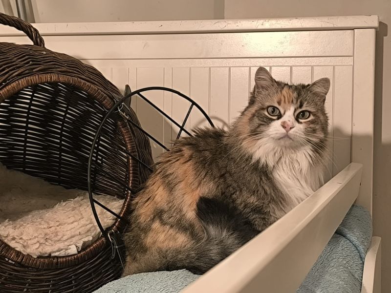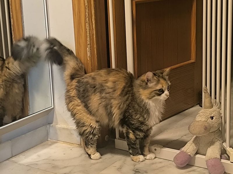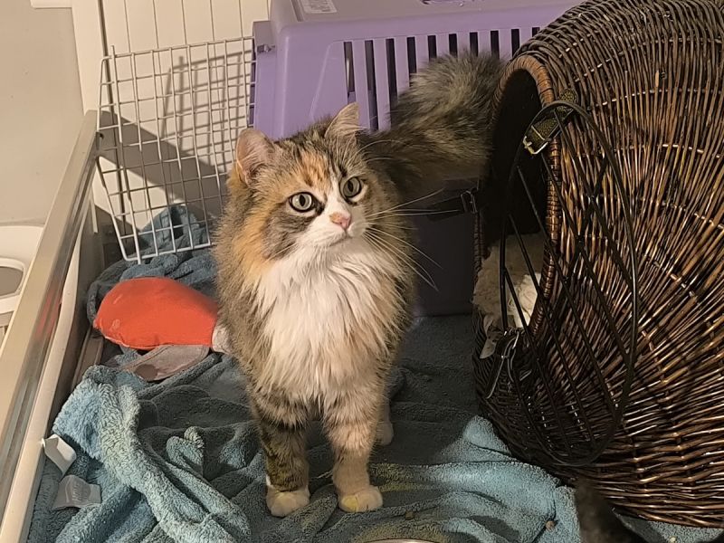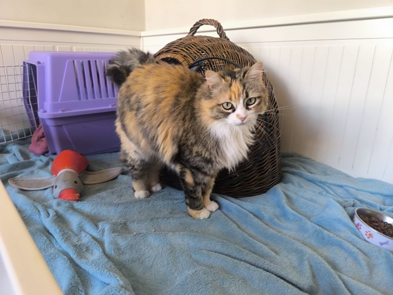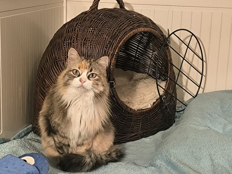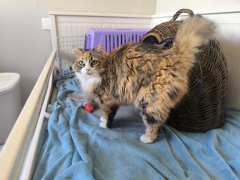 Die hübsche dreifarbige, langhaarige Katzendame Trudi lebte auf der Strasse und wurde von einem alten Mann gefüttert. Leider ist er verstorben und Trudi durfte in die Auffangstation ziehen.