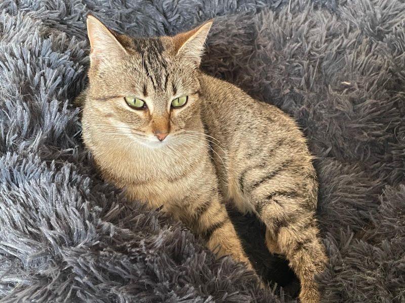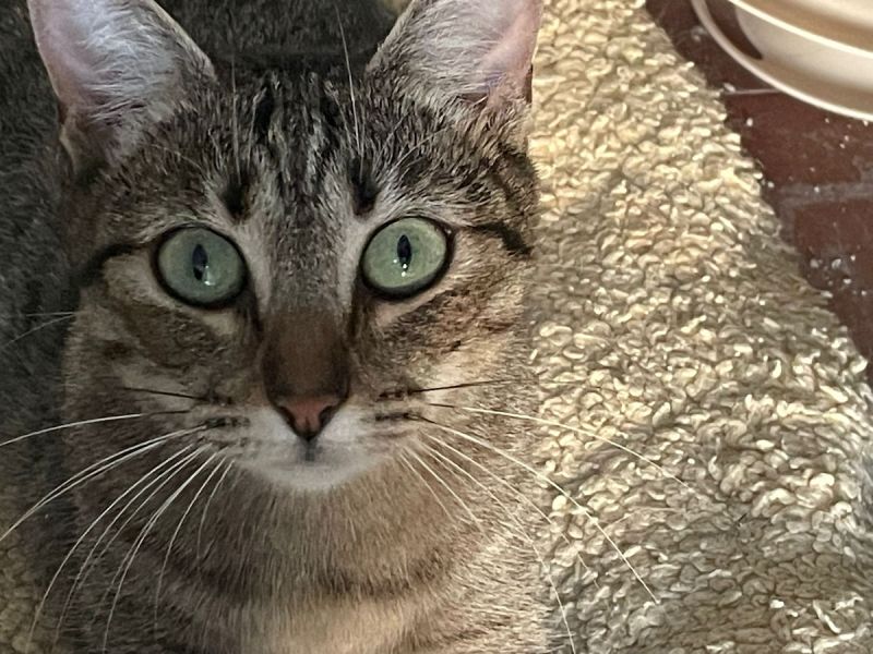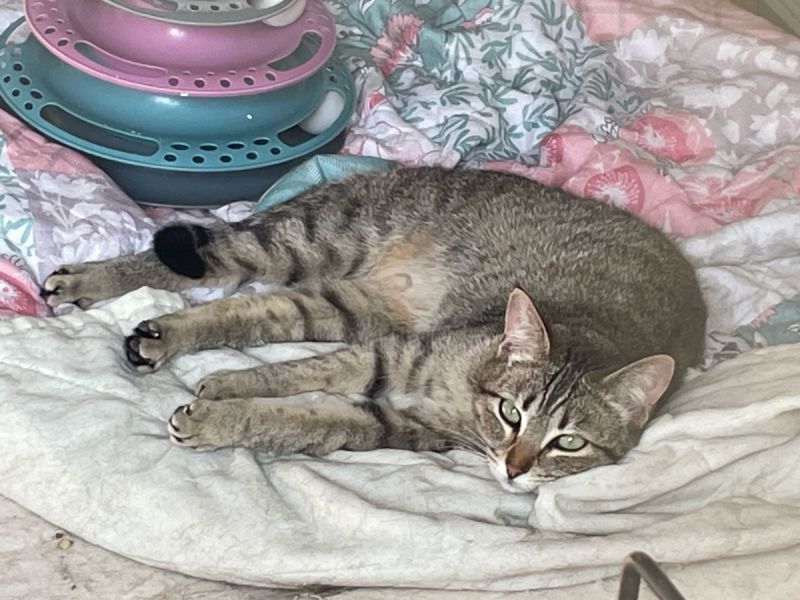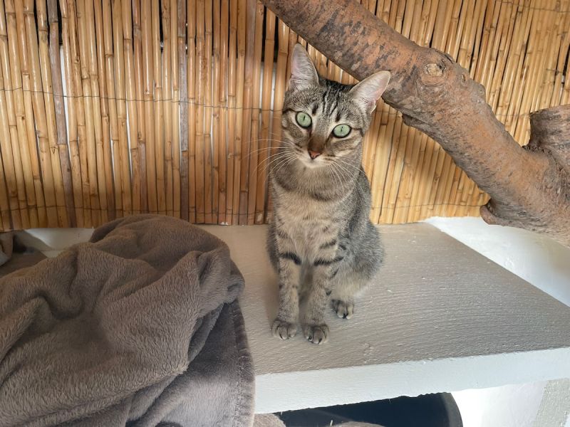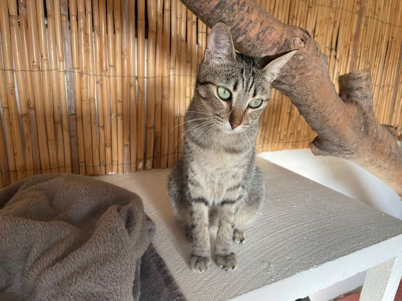 Das grau getigerte Katzenmädchen Tula ist sehr verspielt und tobt mit seinen Gspändli durchs Katzenhaus. Tula liebt Streicheleinheiten und ist dem Menschen sehr zugetan. Sicher würde sie sich über sanft streichelnde Kinderhände freuen.