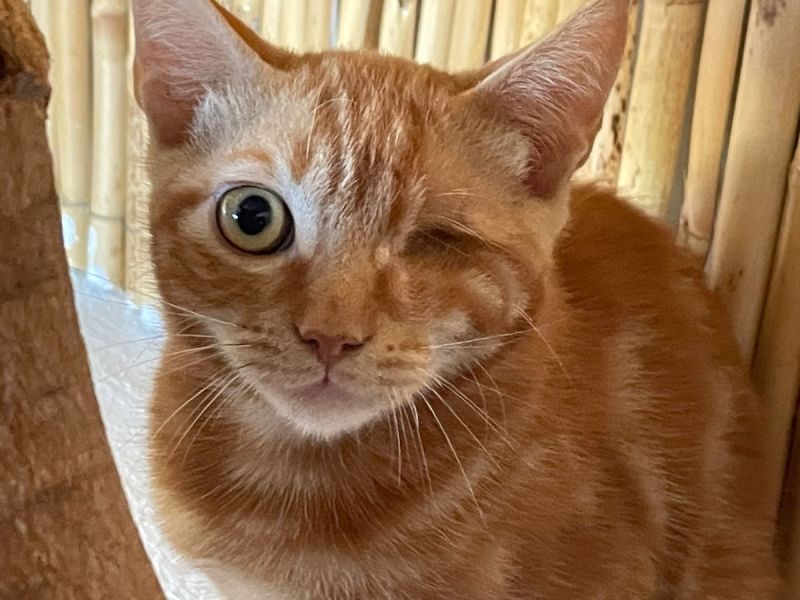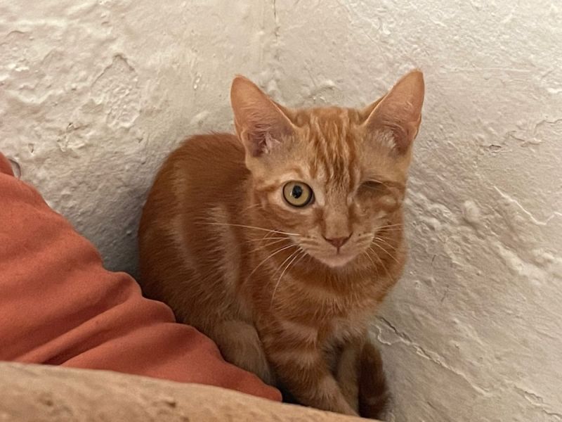 Als man Marcos auf dem Bauernhof fand, hatte er ein so schwer verletztes Auge, dass es in einer Notoperation herausgenommen werden musste. Dies behindert ihn jedoch im Alltag nicht.