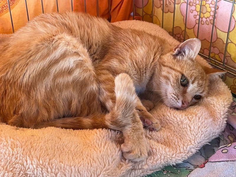 Die hübsche rote Seniorin Molly hielt sich seit längerer Zeit in der Umgebung von Ferienhäusern auf und bettelte dort um Futter. Da die Häuser nicht immer bewohnt werden, nahmen Tierschützer sie mit und brachten sie in die Auffangstation.