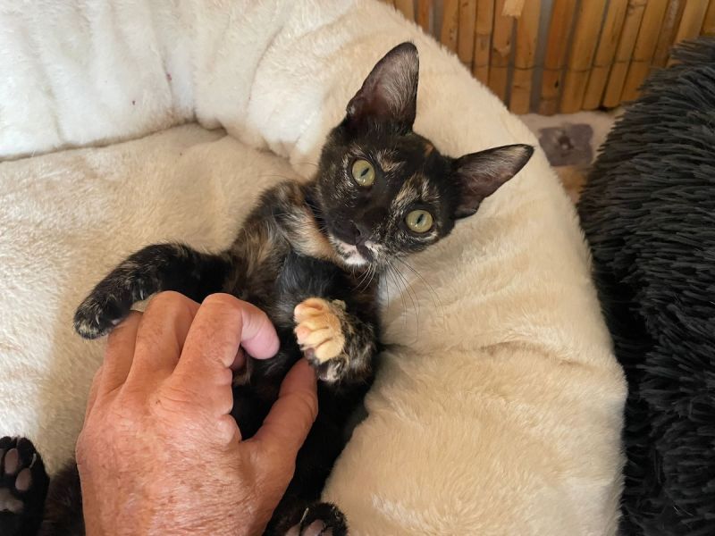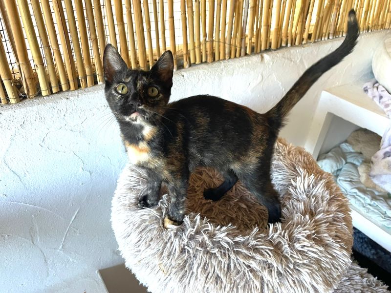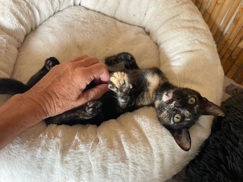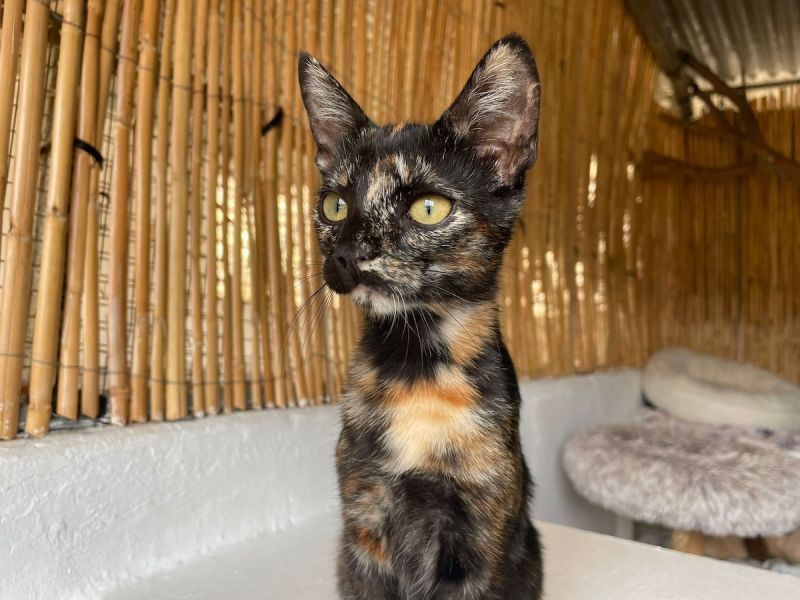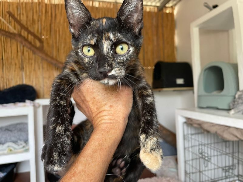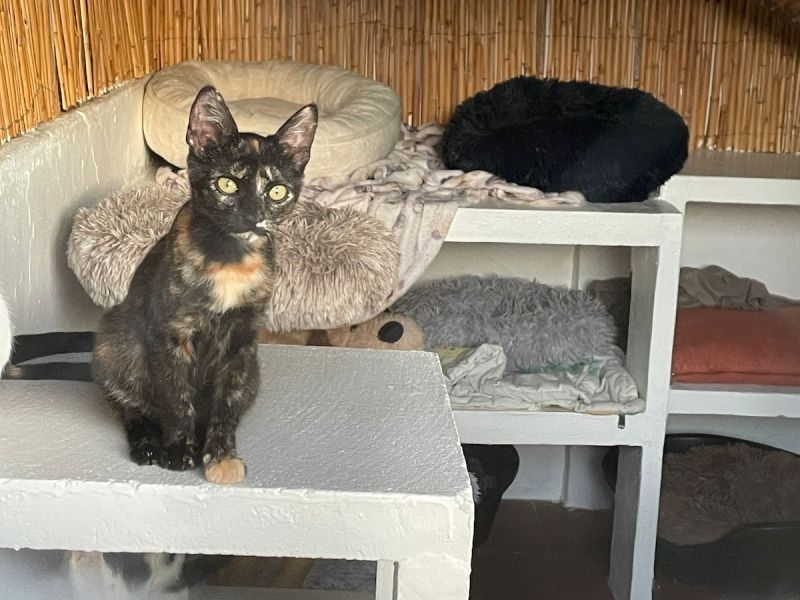 Das hübsche Schildpatt Katzenmädchen Penélope wurde in einer Katzenkolonie ausgesetzt und dem Schicksal überlassen. Tierschützer brachten es in die Auffangstation.