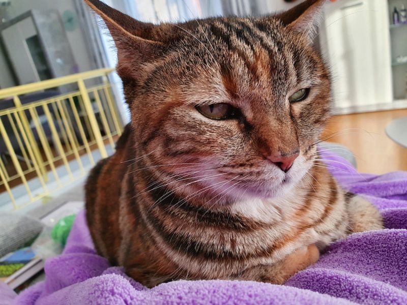 Wir sahen dich auf einem Foto und wussten sofort, dass wir dich gerne adoptieren wollten. Quer durch Europa bist du deshalb gereist und am 1. September bei uns angekommen. Scheu und ängstlich warst du genau einen Tag lang dann hast du dein bzw. Flurins Zimmer erkundet, dich aufs Essen gestürzt und bist mit «Spielzeugen» durch die Wohnung gerannt. Schon am dritten Tag durften wir dich halten und streicheln. Kiko, unser grosser Kater, war nicht sooo begeistert über das kleine und ewig nervende Büsi, doch er akzeptierte die «Unterhaltung». Wenn du ihn zu sehr gestresst hast, bekamst du eins mit seiner Tatze. Eines Samstagmorgens lagt ihr Katzen auf meinem Bett und ich sah, dass dein rechtes Auge verletzt war. Tja, das war nicht nur verletzt, sondern leider nicht mehr zu retten. Am selben Nachmittag wurdest du operiert. Deinen Softkragen fandest du supermühsam und hast mit ihm gekämpft. Die Wunde heilte gut. Ab da warst du als einäugige Piratin munter unterwegs und Mitte November, nach deiner Kastration, durftest du raus. Das war für dich eine Offenbarung. Solange die Sonne schien. Regen empfandest du als Zumutung und Schnee erst recht. Mit den Wochen hast du immer ein wenig zugenommen und bist ein paar Millimeter gewachsen. Dein Fell wurde glänzend und schön, wenn Besuch kam, warst du immer neugierig. Kaum lag jemand aus der Familie auf dem Sofa oder dem Bett, sprangst du dazu und wolltest schmusen. Lesen oder sonst was war nicht mehr möglich.