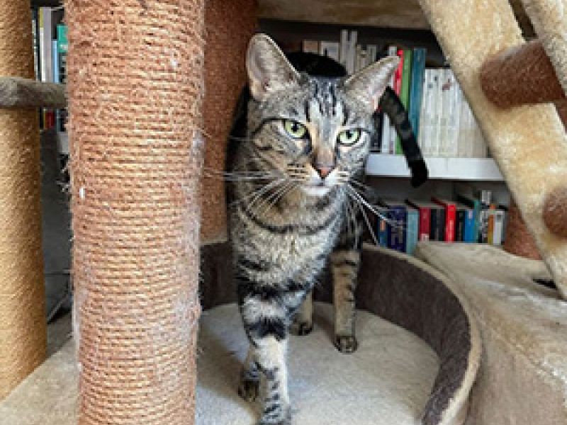 Aus Moe, die halb verhungert, verwundet und schlimm zugerichtet aus einer Kolonie gerettet wurde, ist dank liebevoller Pflege eine Schönheit mit seidigem Fell geworden. Anfangs panisch scheu, hat sich Moe zu einer neugierigen, verschmusten und verspielten Tigerdame, die mit allen Katzen gut auskommt, entwickelt und dankt ihrem Gotti Jasmin K. von Herzen für die Unterstützung.