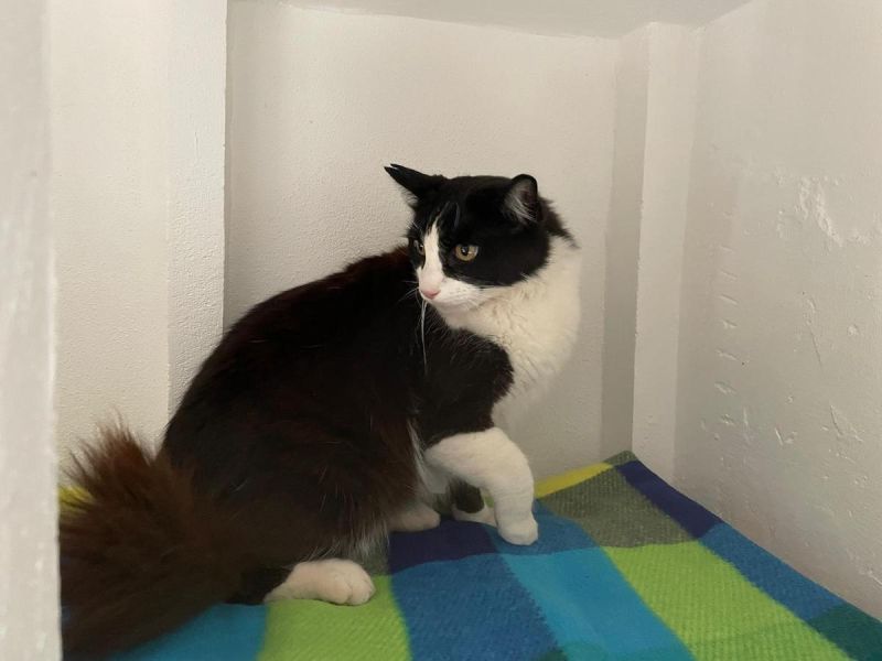 Von einer Tierfreundin von der Strasse geholt und mit nach Hause genommen, wurde Dani vom hauseigenen Kater böse angegangen, worauf sie den schüchternen Kater in einen Abstellraum sperrte. Inzwischen hat sich der sanfte, freundliche Dani in der Auffangstation gut eingelebt, ist aufgetaut und dankt seinem Gotti Narai Claudia D. herzlich für die Patenschaft.