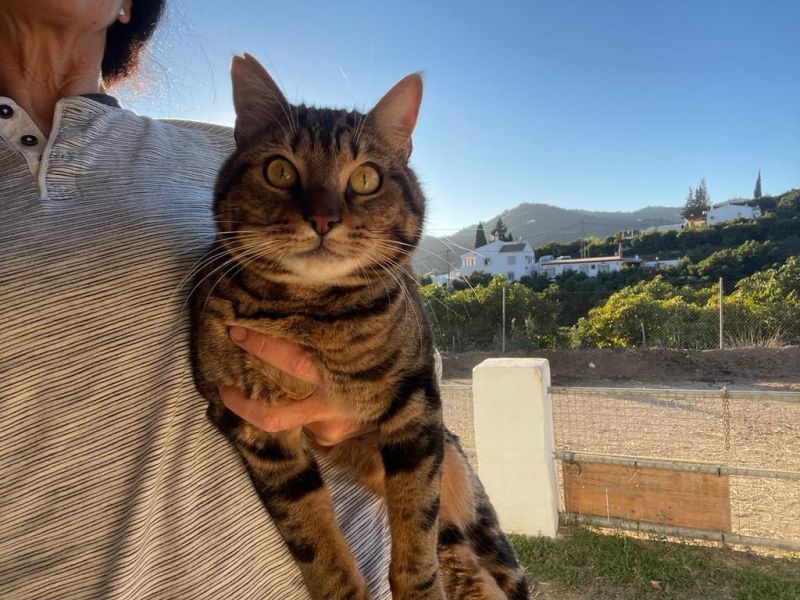 Die wunderbare und scheue Julieta lebte jahrelang in einer Katzenkolonie bei Málaga und wurde zusammen mit ihren Babies eingefangen. Bald stellte sich heraus, dass für sie nur ein Leben in Freiheit in Frage kommt und seither hat sie bei Simone einen Lebensplatz gefunden und geniesst mit ihren Kumpels das Leben unterm Zitronen- und Avocadobaum. Dass sie jetzt auch noch in Audrey und Ben E. Paten gefunden hat, macht ihr Glück perfekt!
