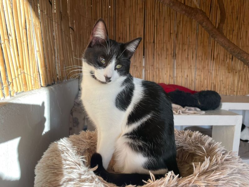 Das hübsche schwarz-weisse Katzenkind Alica wurde verlassen von Urlaubern gefunden und in die Auffangstation gebracht.