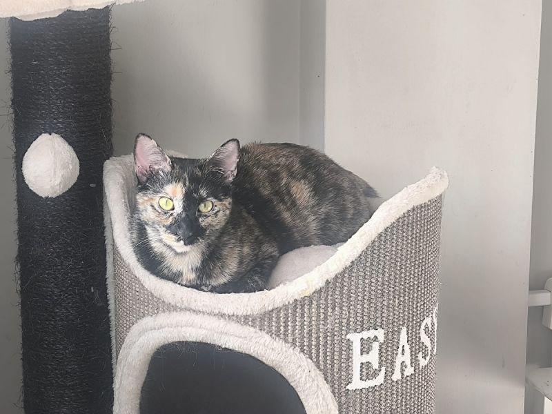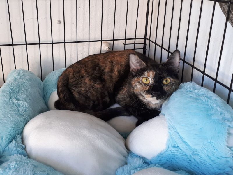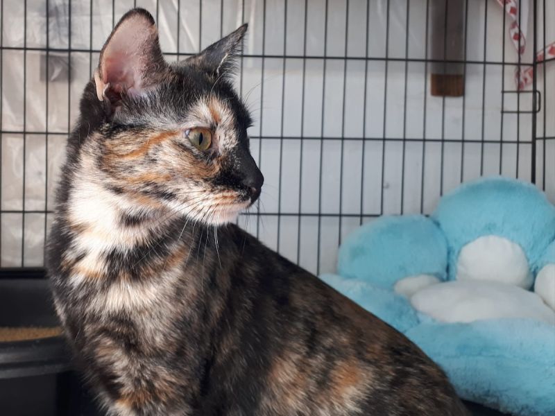 Das hübsche Schildpatt Katzenmädchen Ambar verlor sein Zuhause, da sein Frauchen umgezogen ist und es nicht mitnehmen konnte. Nun wartet Ambar in der Auffangstation auf ein liebevolles Zuhause.