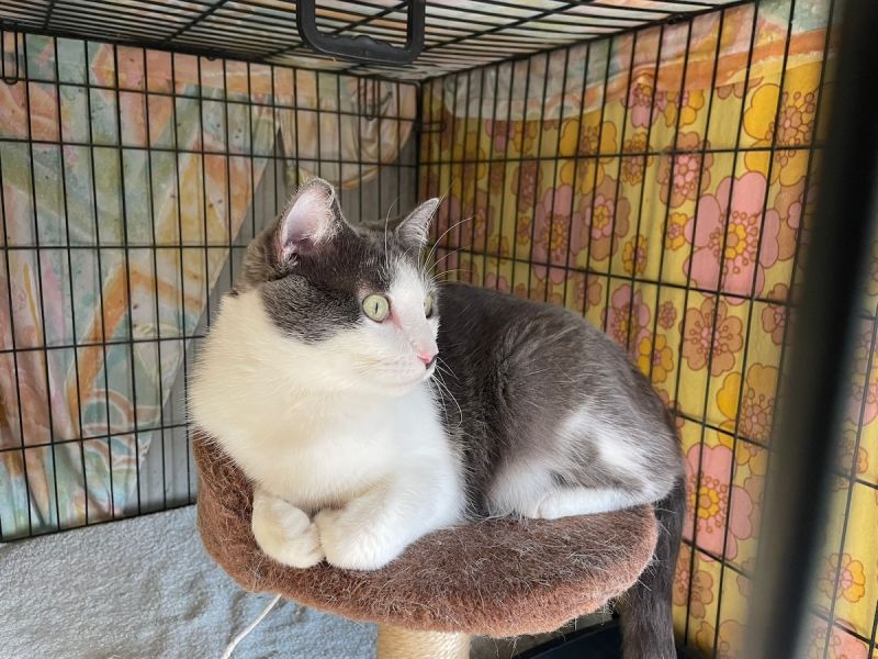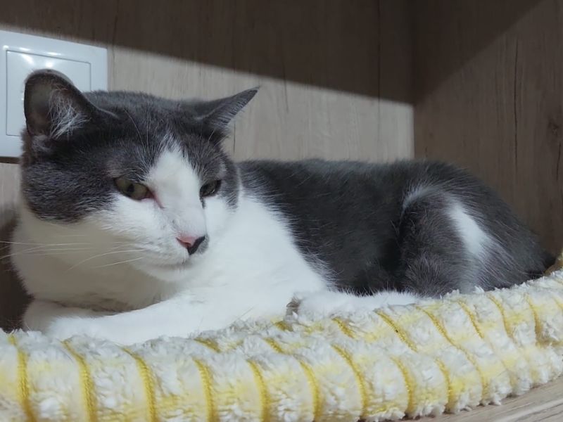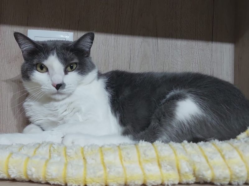 Die russisch blau-weisse Katzendame Carola sass in einem schlecht geführten Tierheim, wurde durch Tierschützer ausgelöst und durfte in die Auffangstation ziehen.