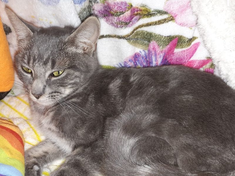 Das hübsche graue Katzenmädchen Gabriela wurde mit ca. 4 Monaten mit der Katzenfalle in einer Katzenkolonie eingefangen. Nach der Untersuchung in der Tierklink durfte es in die Auffangstation ziehen.