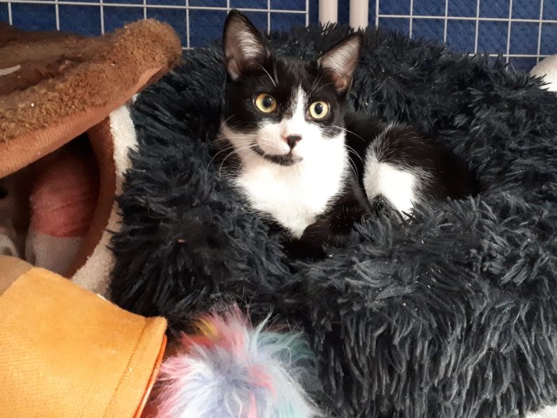Der hübsche schwarz-weisse Kater Miguel wurde mit ca. 4 Monaten mit einer Falle in einer Katzenkolonie gefangen. Nach der Untersuchung in der Tierklinik durfte er in die Auffangstation ziehen.