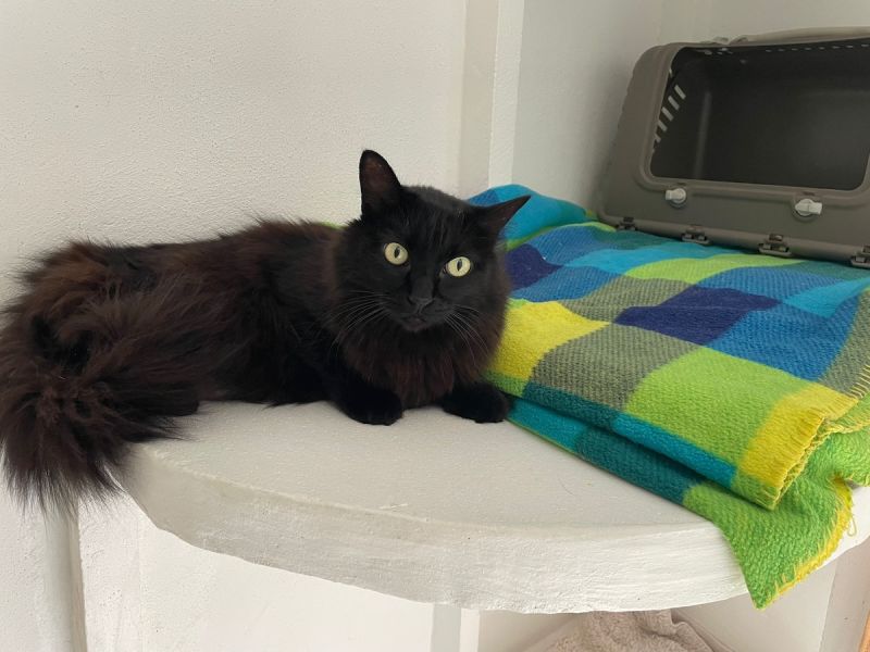 Die langhaarige schwarze Schönheit Moira sass plötzlich an der Uferpromenade und strich den Fussgängern um die Beine, bettelte um Futter und wollte gestreichelt werden. Die Versuche einen Besitzer zu finden, scheiterten und so durfte sie in die Auffangstation ziehen.