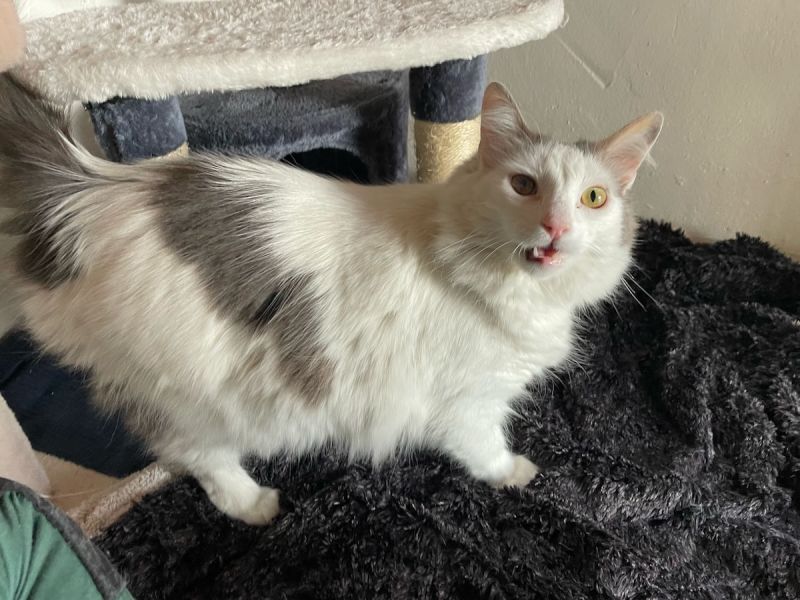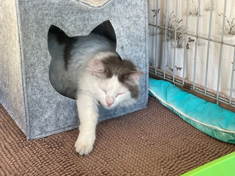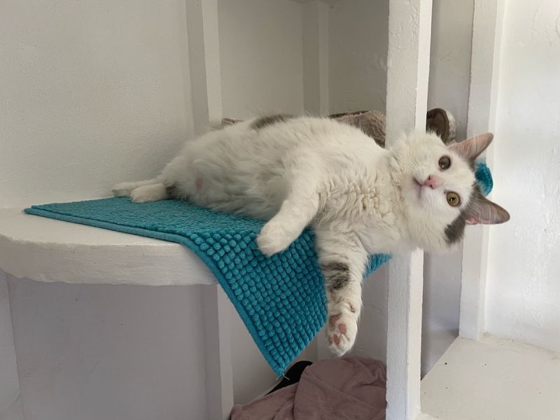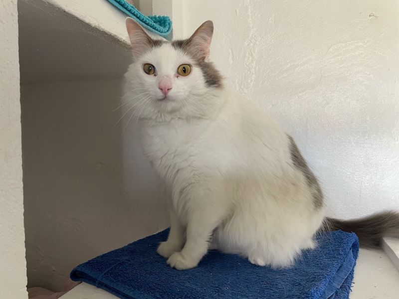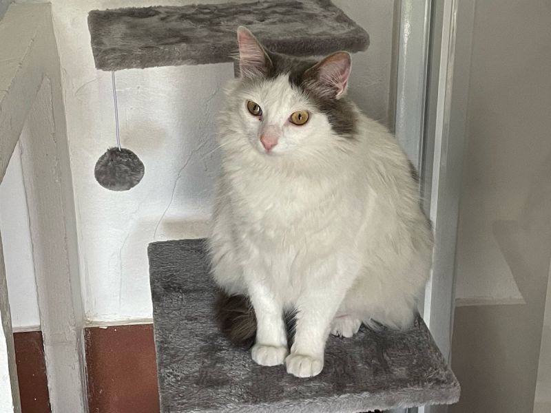 Das hübsche langhaarige weiss-graue Katerchen Salva lebte an einer gefährlichen Strasse mit viel Verkehr und hätte jederzeit überfahren werden können. Tierschützer brachten ihn dann in die Auffangstation.