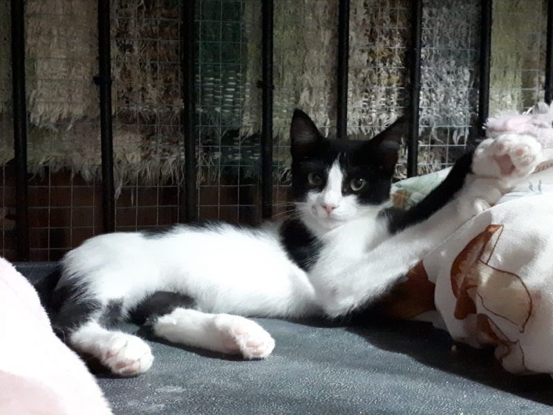 Der hübsche schwarz-weisse Katzenbub Steven wurde mit seinem Bruder Marcos von einem schlecht geführten Bauernhof weggeholt, da die Versorgung nicht optimal war. Tierschützer brachten die beiden in die Auffangstation.