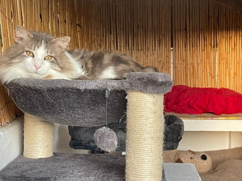 Der hübsche Langhaar Kater Momo lebte im Aussenbereich eines Hotels. Nun ist das ganze Areal für längere Zeit wegen Renovierungsarbeiten geschlossen und Momo musste eine andere Unterkunft suchen. Tierschützer brachen ihn in die Auffangstation.
